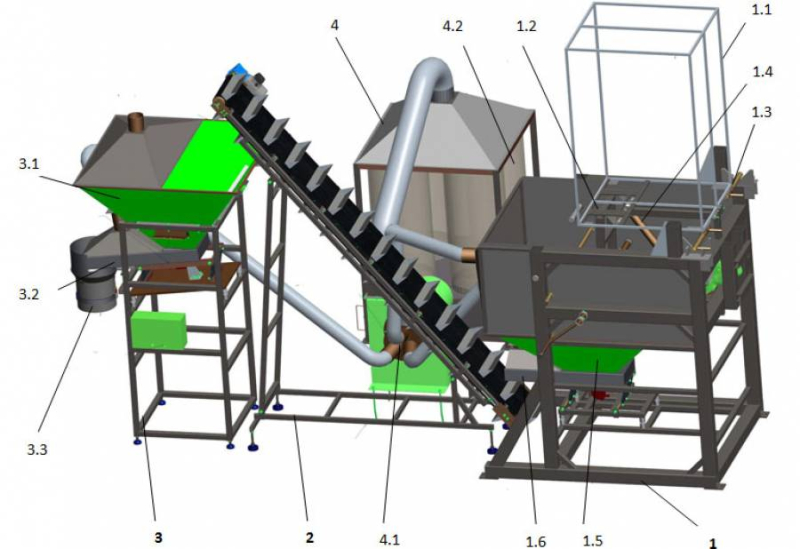 Линия фасовки древесного угля с опрокидывателем