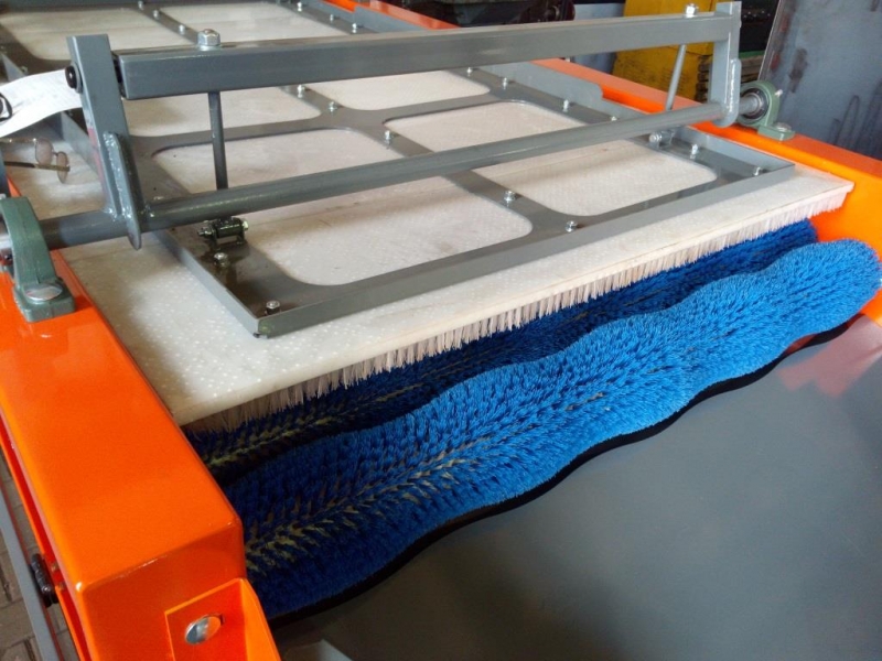 Страна-производитель: Россия Фирма-производитель: Сигнал-Пак Состояние: Новое Цена договорная Машина МСО-12Щ состоит из рамы с приемным лотком, узла щеточного и ската. Продукт поступает на лоток приемный и с лотка на вращающиеся щетки валов. Происходит механическое сухое отделение грязи от продукта (в том числе углублений на продукте).
